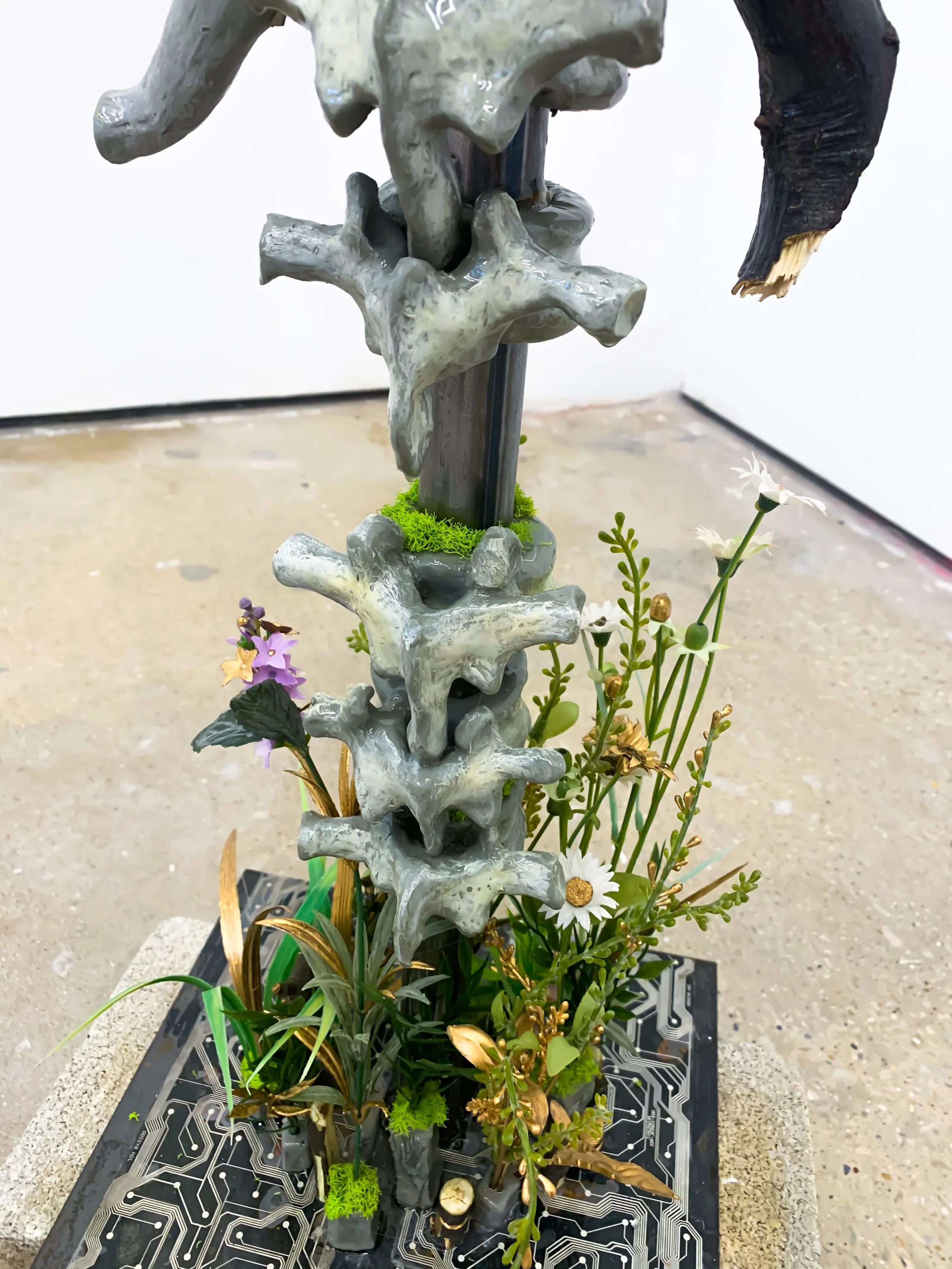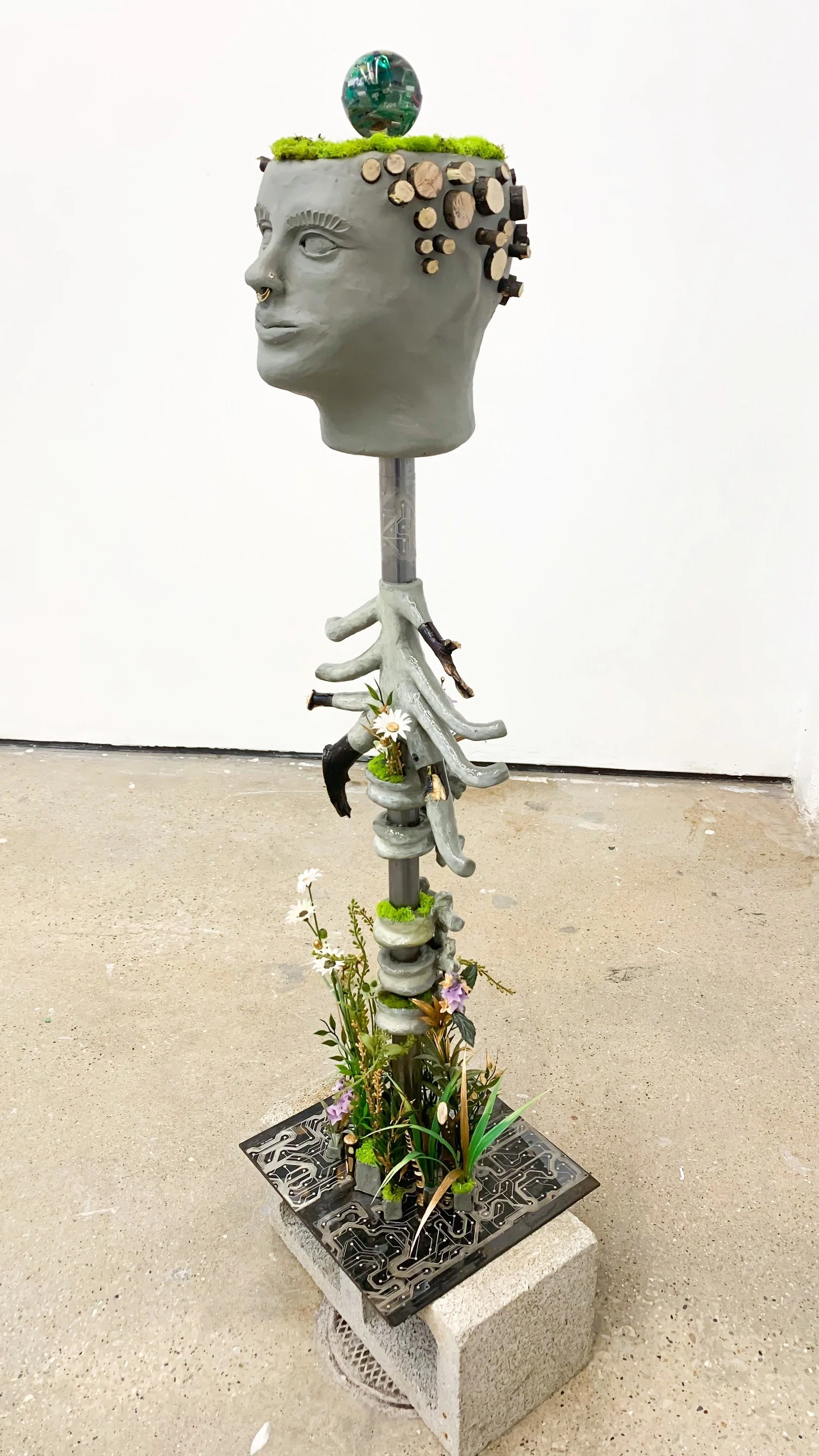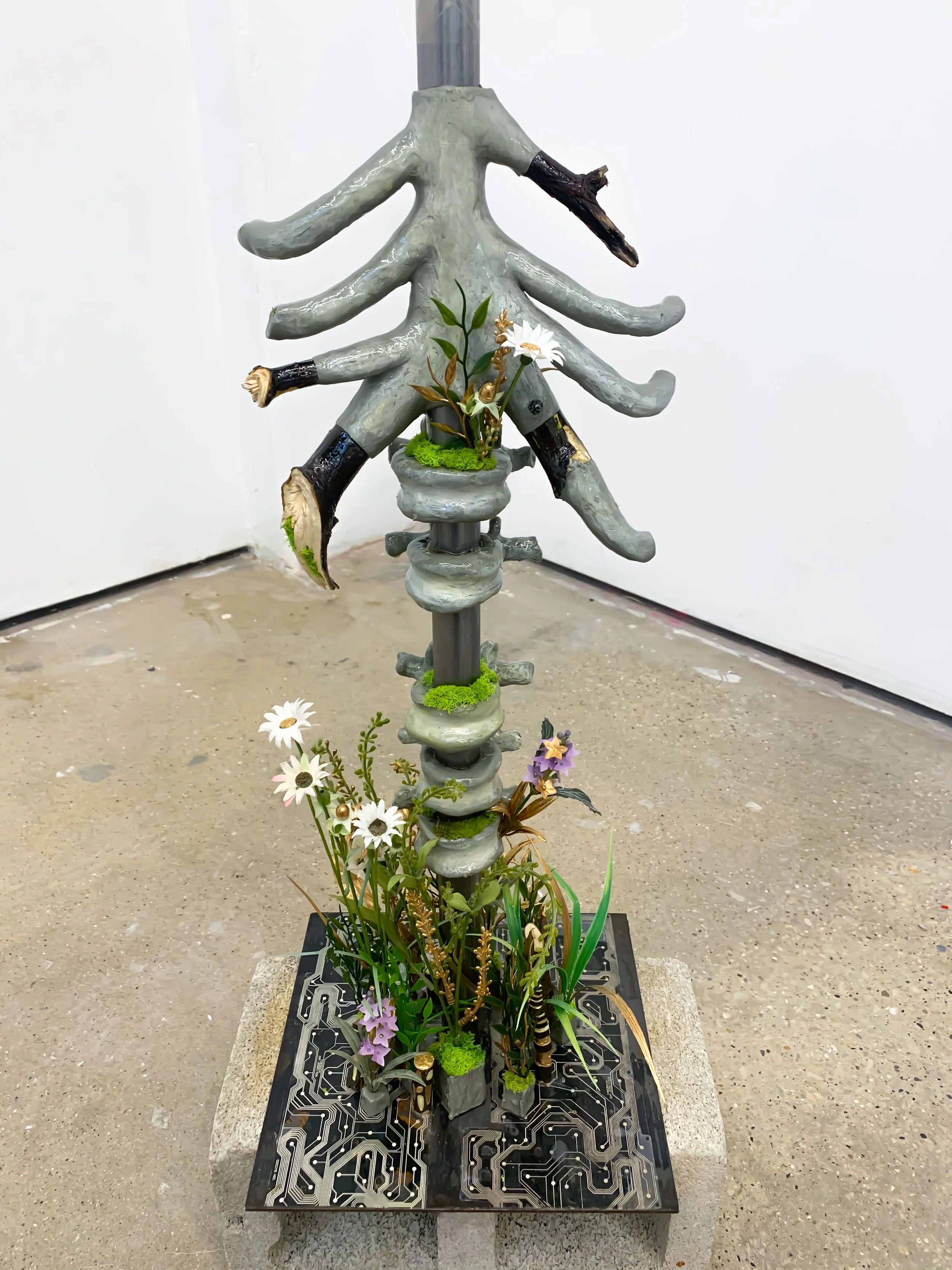 'Landscape' 2021. (paper clay, resin, tree branches, synthetic plant material)