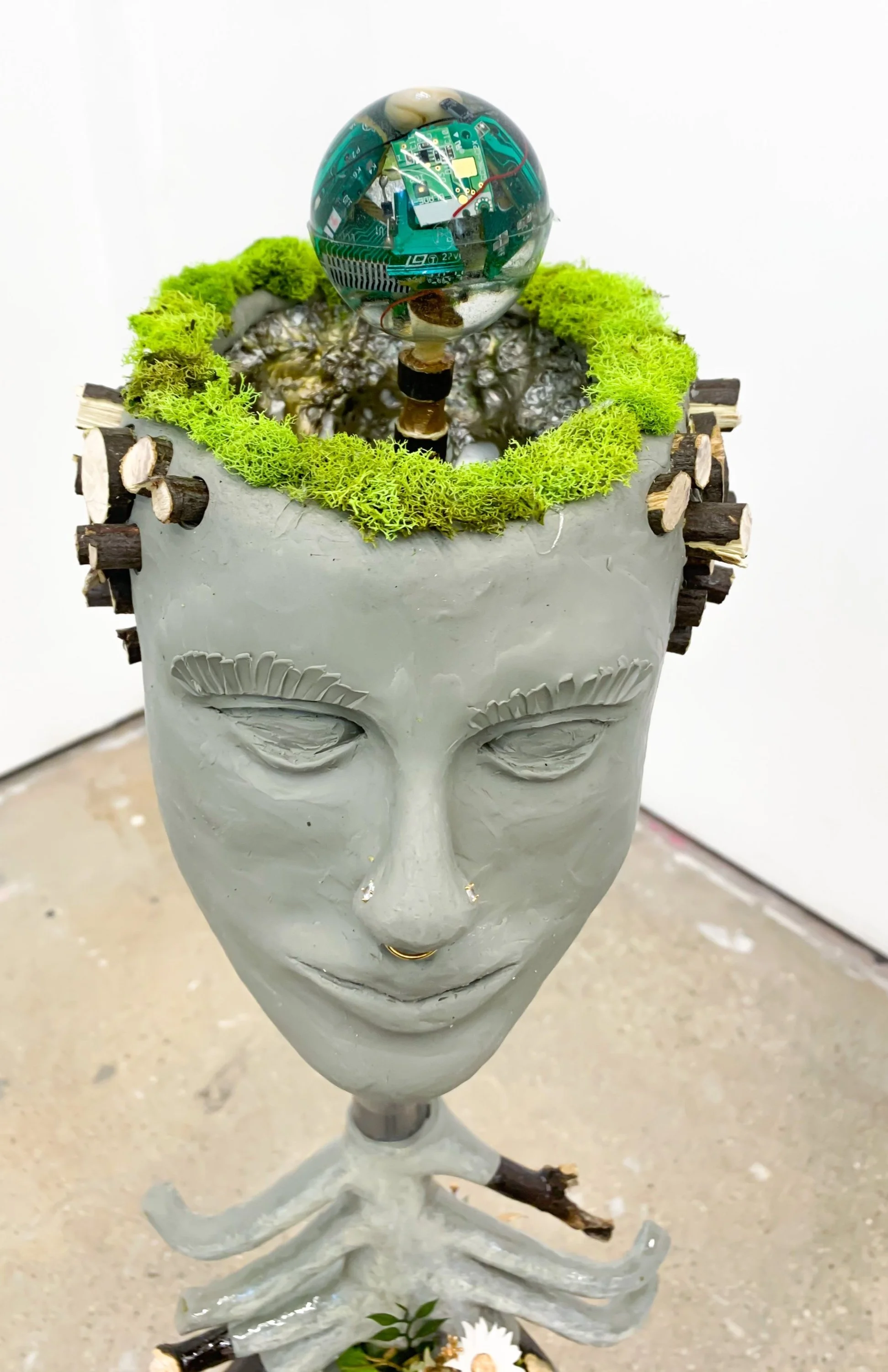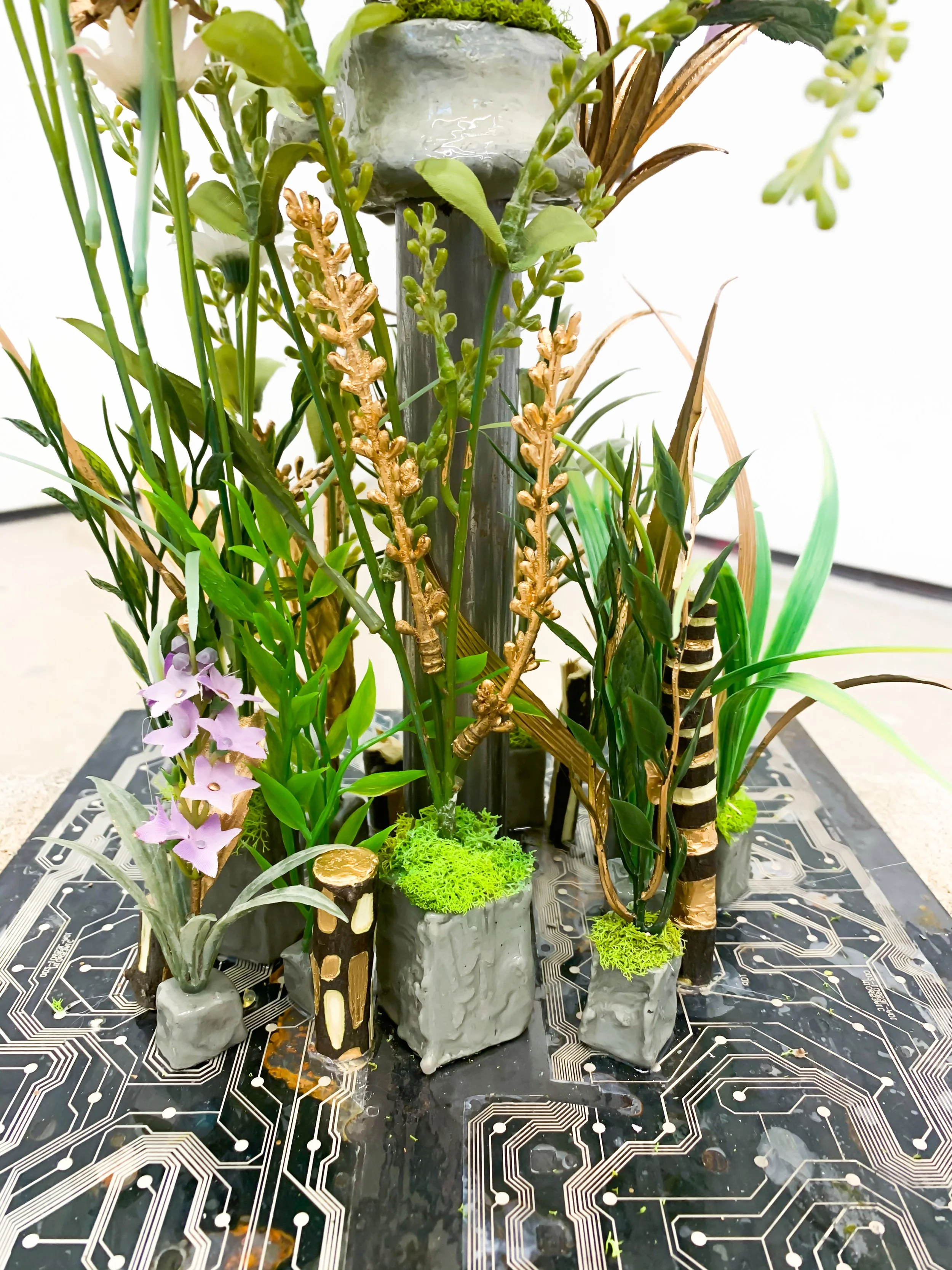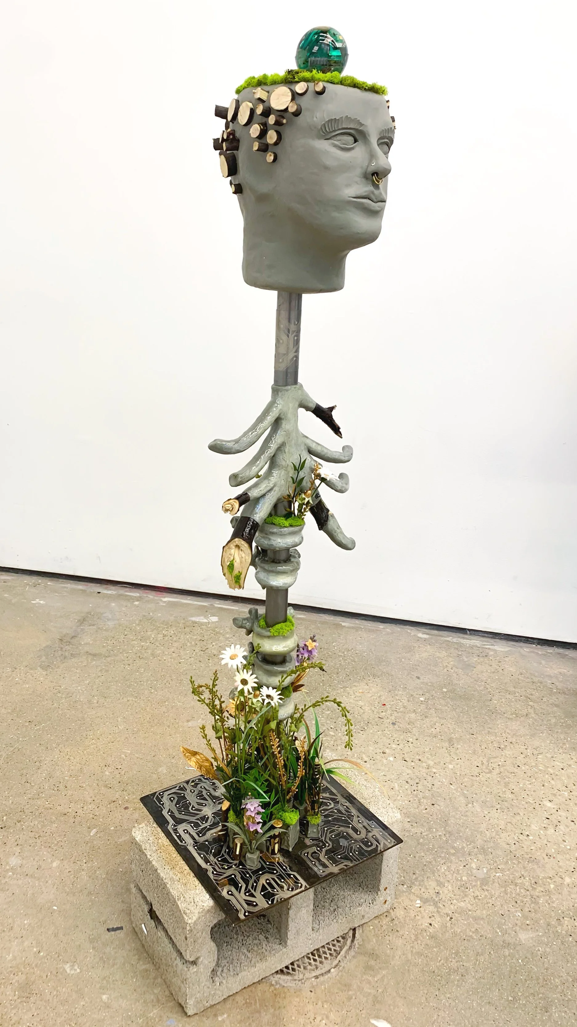 'Landscape' 2021. (paper clay, resin, tree branches, synthetic plant material)